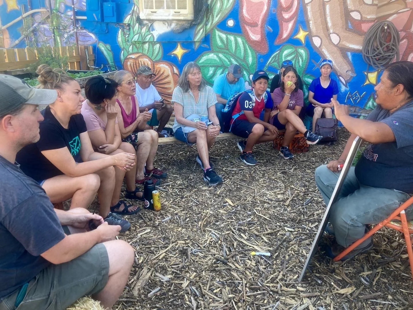 Brandon Francis, Diné teacher, grower and scientist, teaching in the Good Sam Garden.